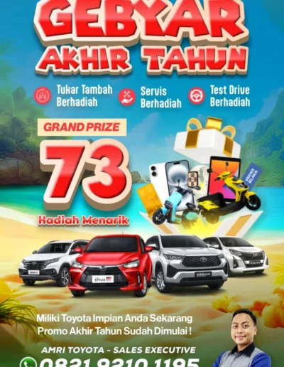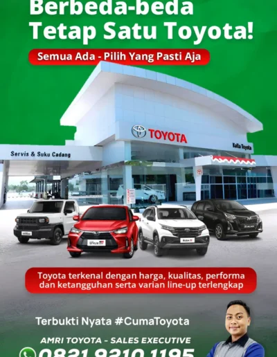 Salam Hangat, saya Amri TOYOTA, apresiasi dan ucapan terima kasih yang sebesar-besarnya atas waktu yang telah anda luangkan untuk mengunjungi website saya. Tersedia tombol Chat di bawah ini yang bisa anda akses untuk komunikasi langsung dengan saya.
